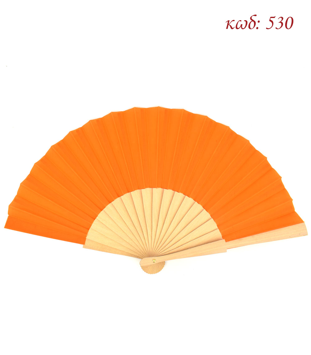 Βεντάλια ξύλινη με ύφασμα σε πορτοκαλί απόχρωση.