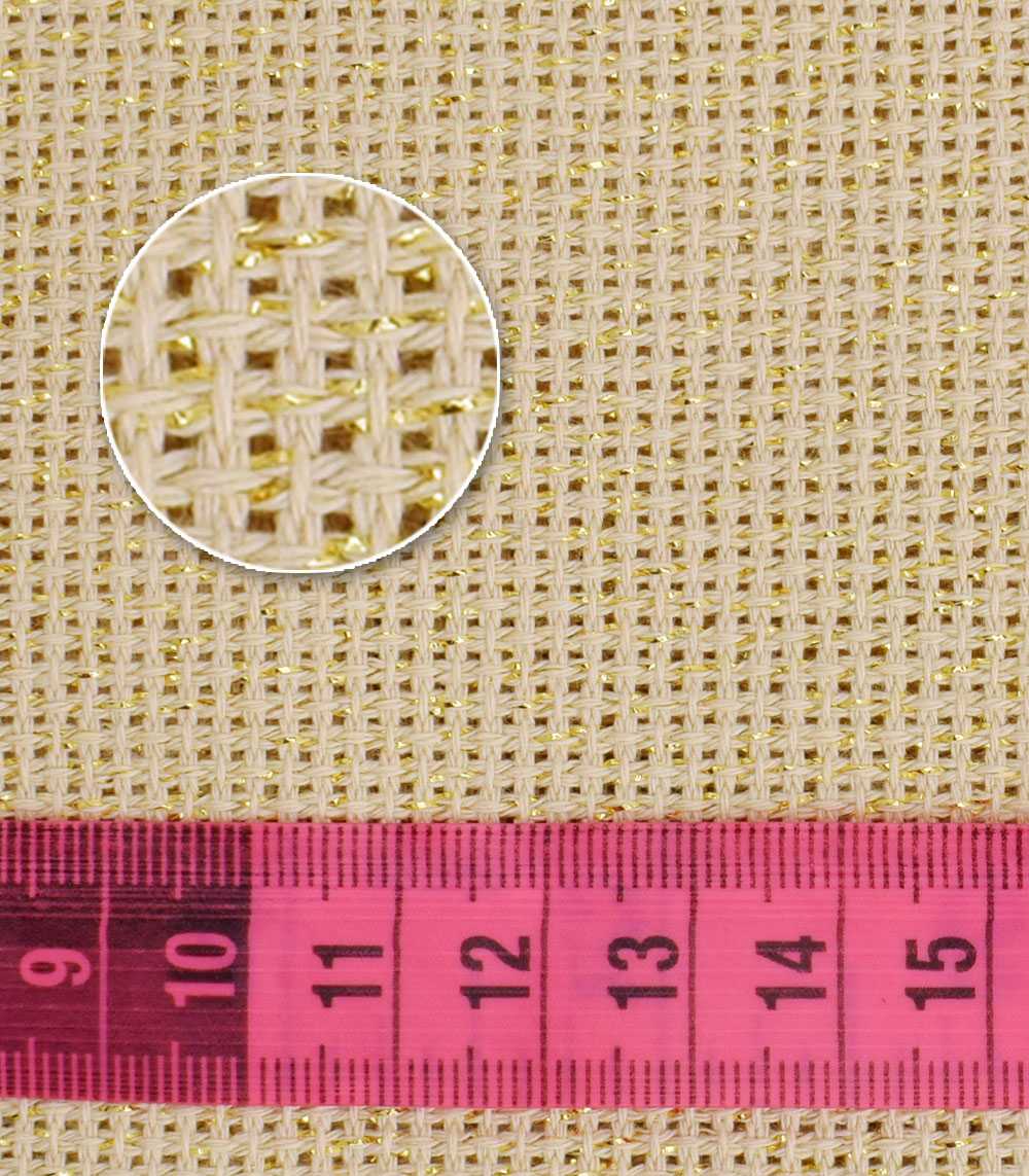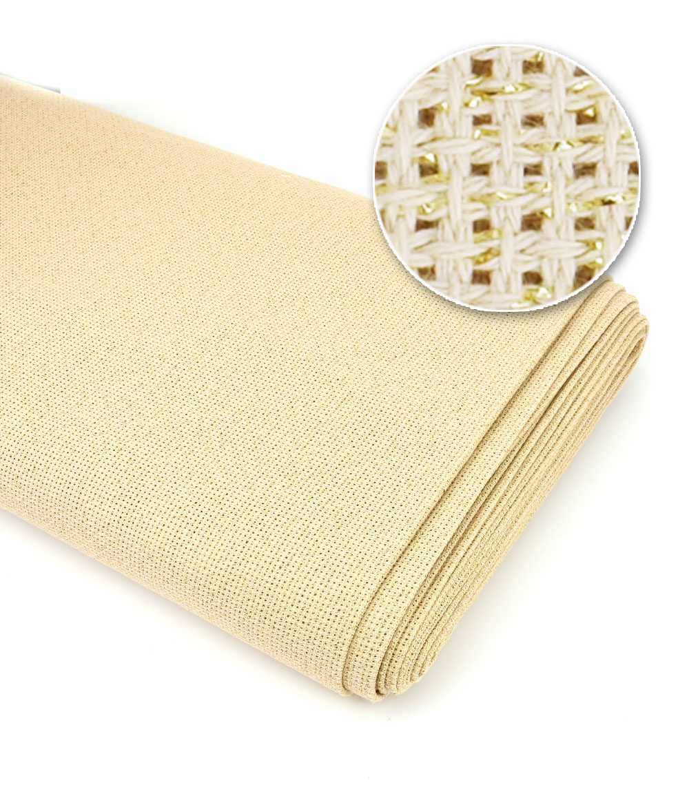 Η σταθερή του ύφανση διευκολύνει τις βελονιές, ενώ η μεταλλική λεπτομέρεια της χρυσοκλωστής προσθέτει λάμψη και κομψότητα στο τελικό αποτέλεσμα.
