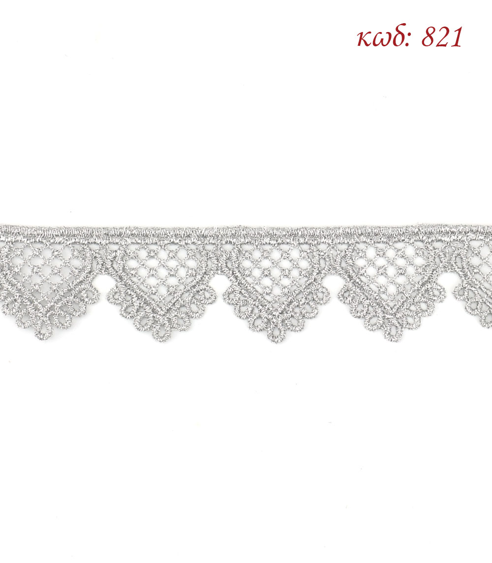 Δαντέλα εργοχείρων κεντημάτων, φάρδος 3 εκατοστά, χρώμα Ασημί