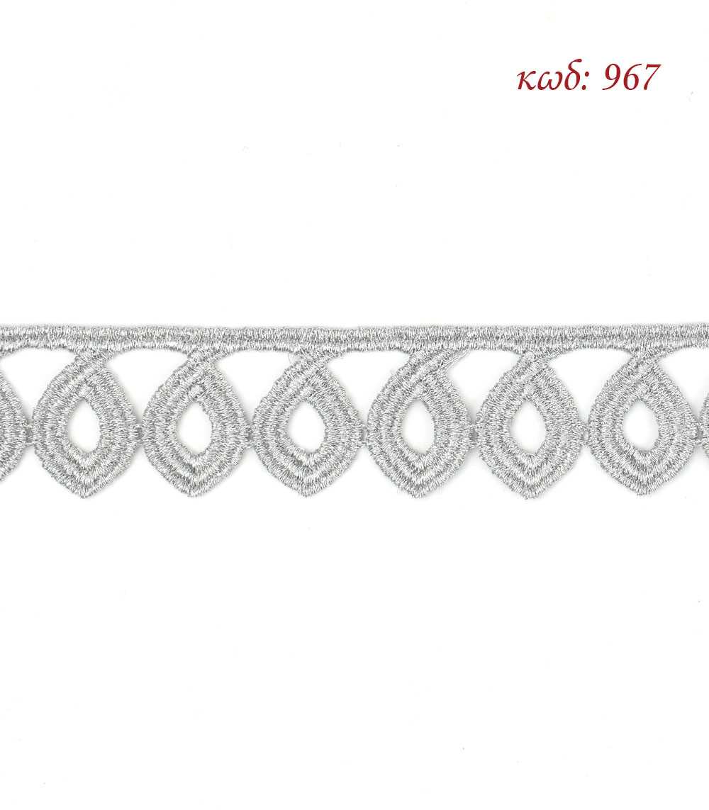 Δαντέλα εργοχείρων κεντημάτων, φάρδος 3 εκατοστά, χρώμα Ασημί