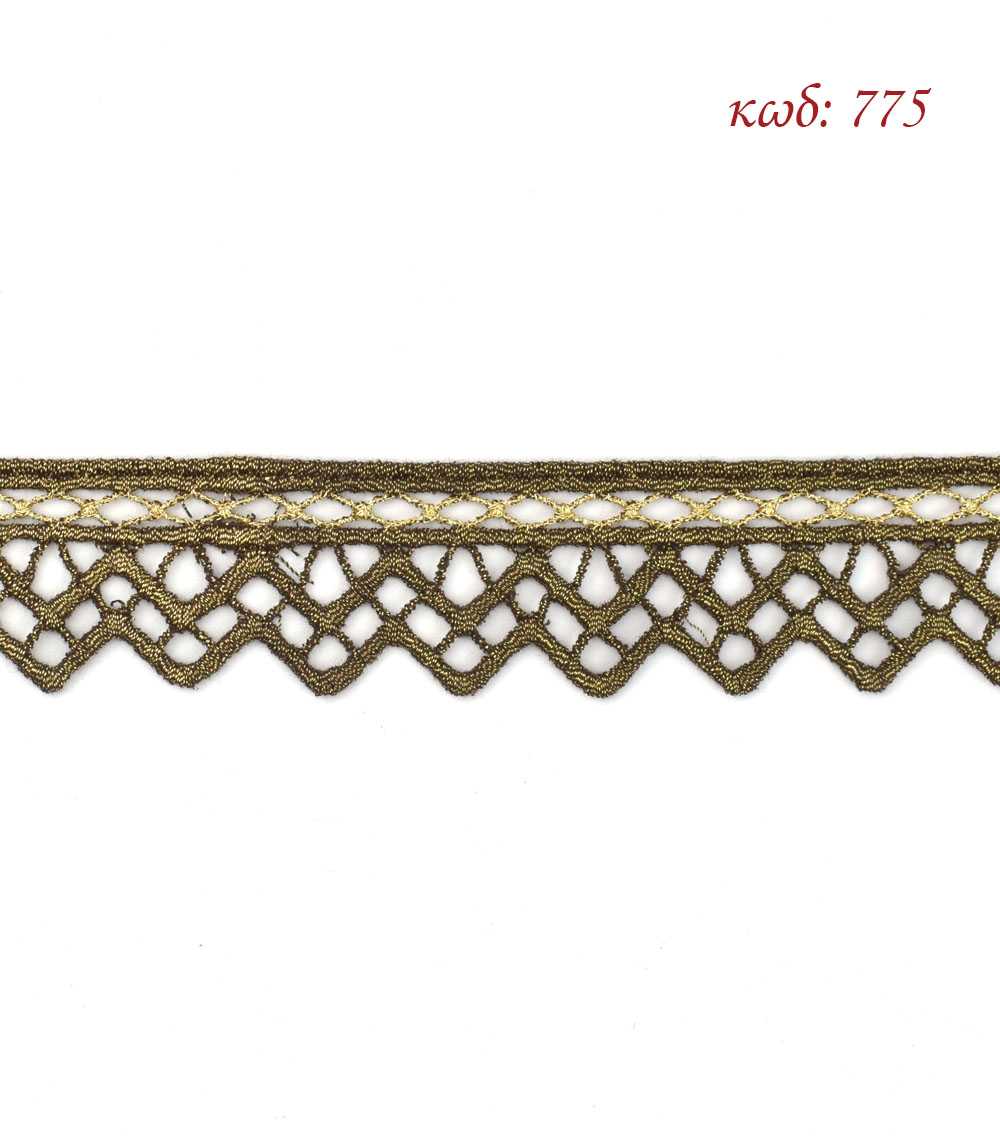 Δαντέλα εργοχείρων κεντημάτων, φάρδος 3 εκατοστά, χρώμα Μπρονζέ χρυσό ανοιχτό