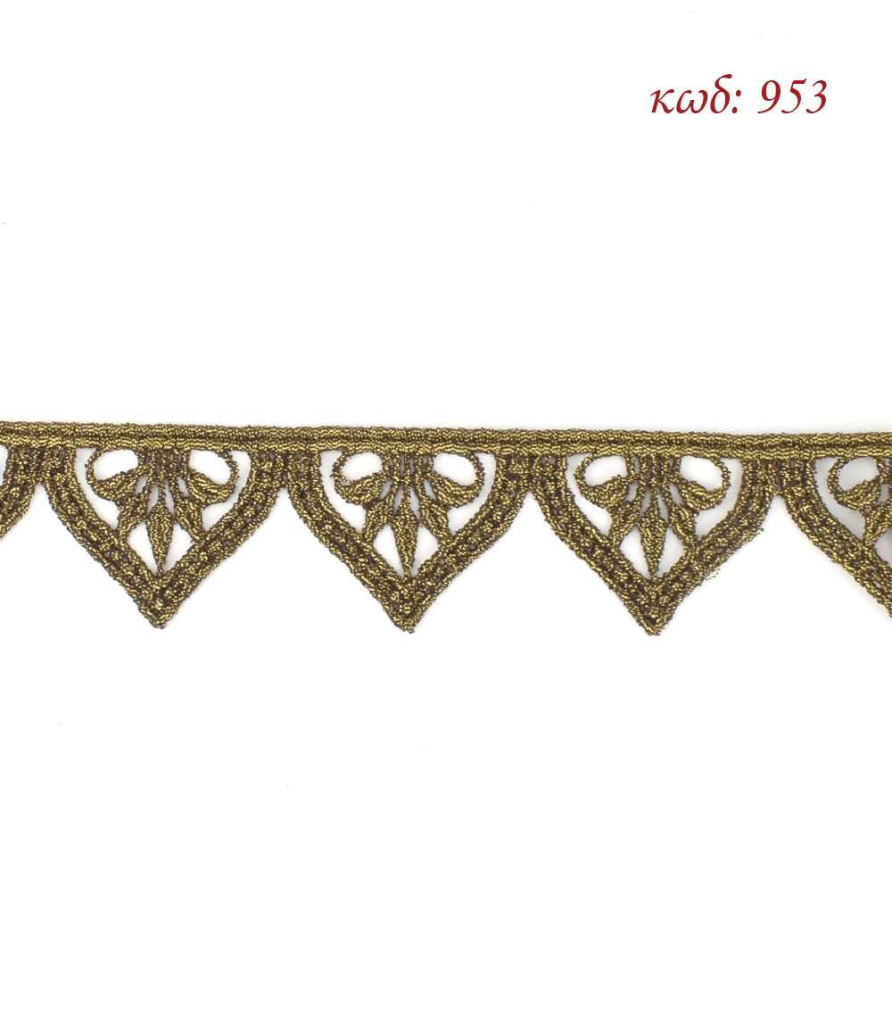 Δαντέλα εργοχείρων κεντημάτων, φάρδος 3 εκατοστά, χρώμα Μπρονζέ