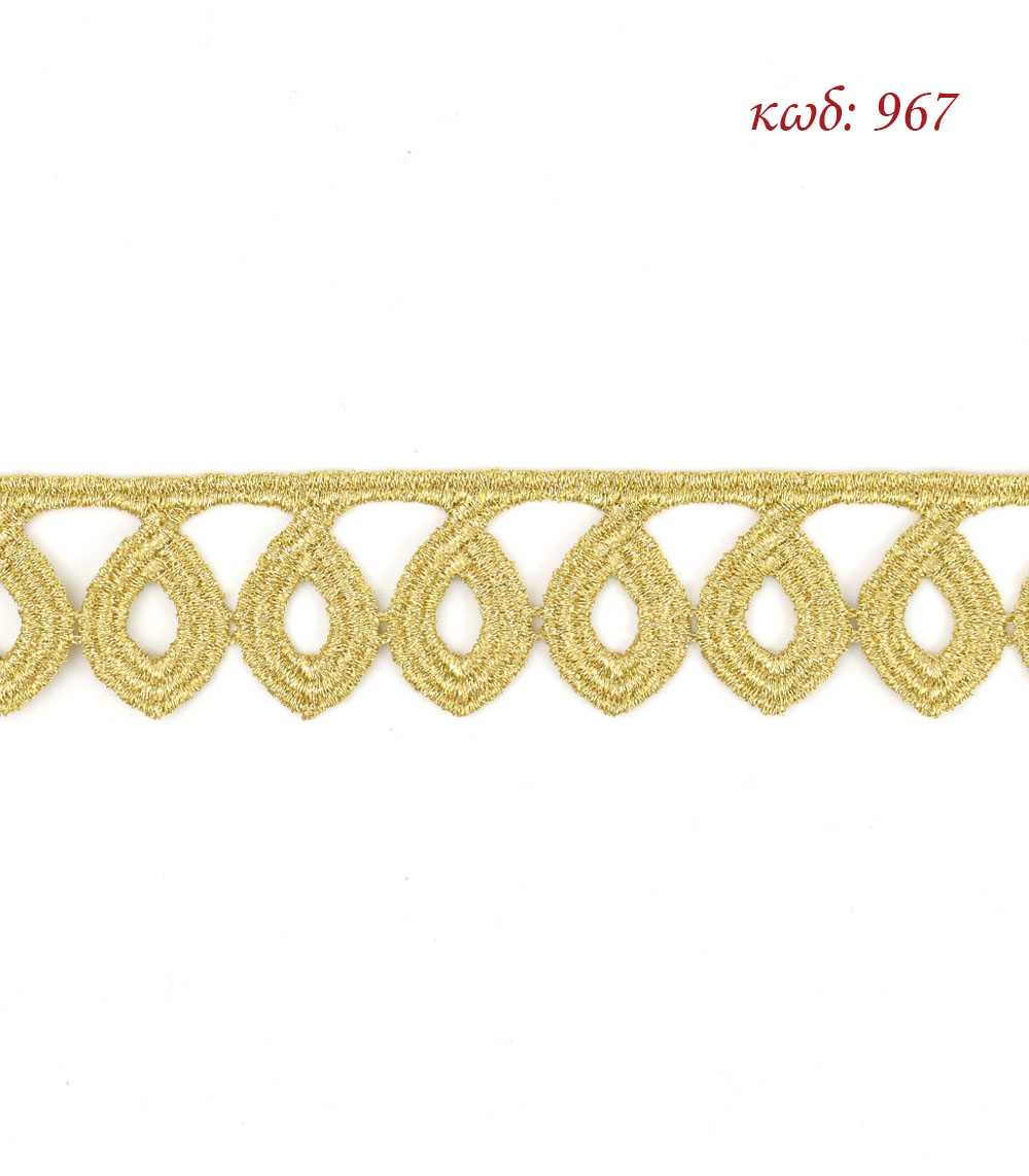 Δαντέλα εργοχείρων κεντημάτων, φάρδος 3 εκατοστά, χρώμα Χρυσό
