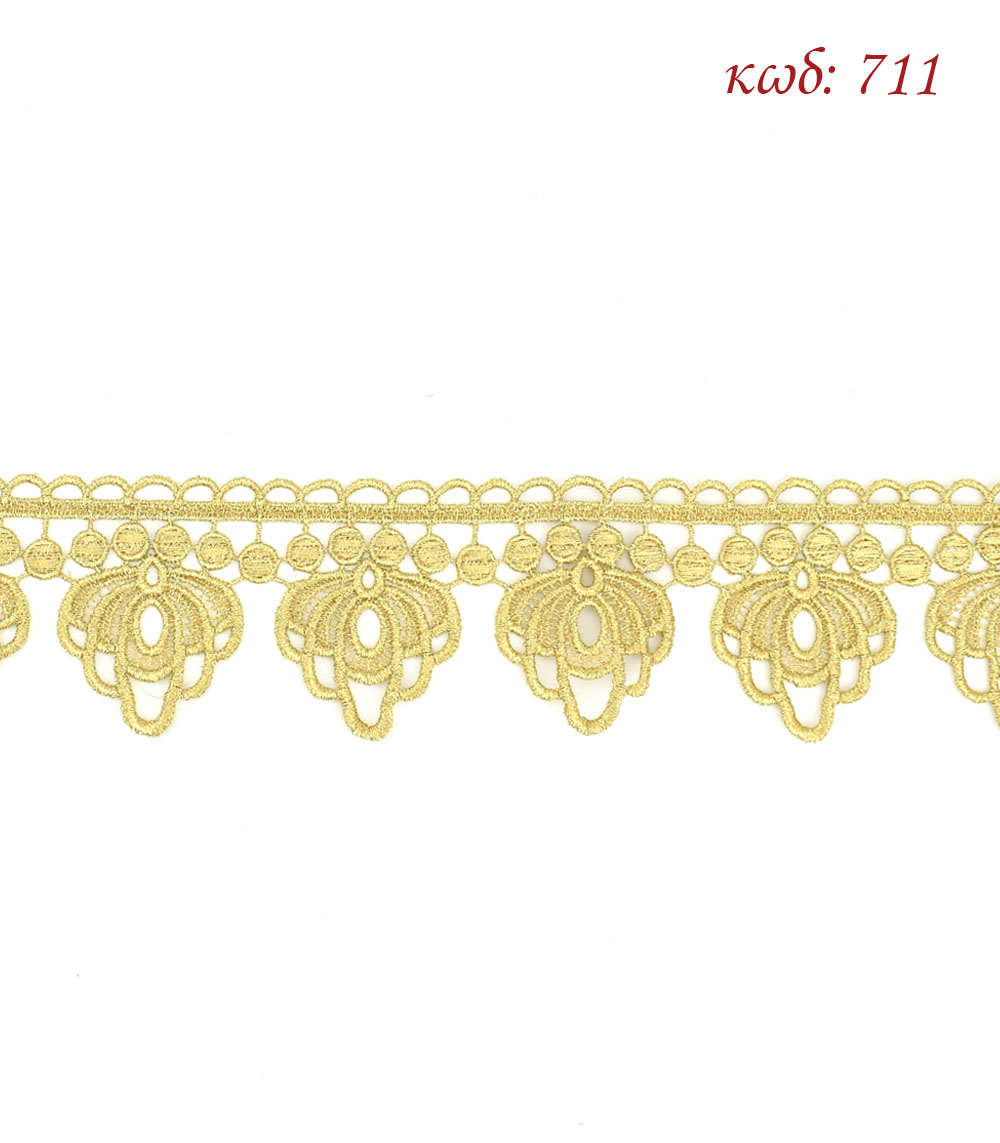 Δαντέλα εργοχείρων κεντημάτων, φάρδος 6,5 εκατοστά, χρώμα Χρυσό ανοιχτό