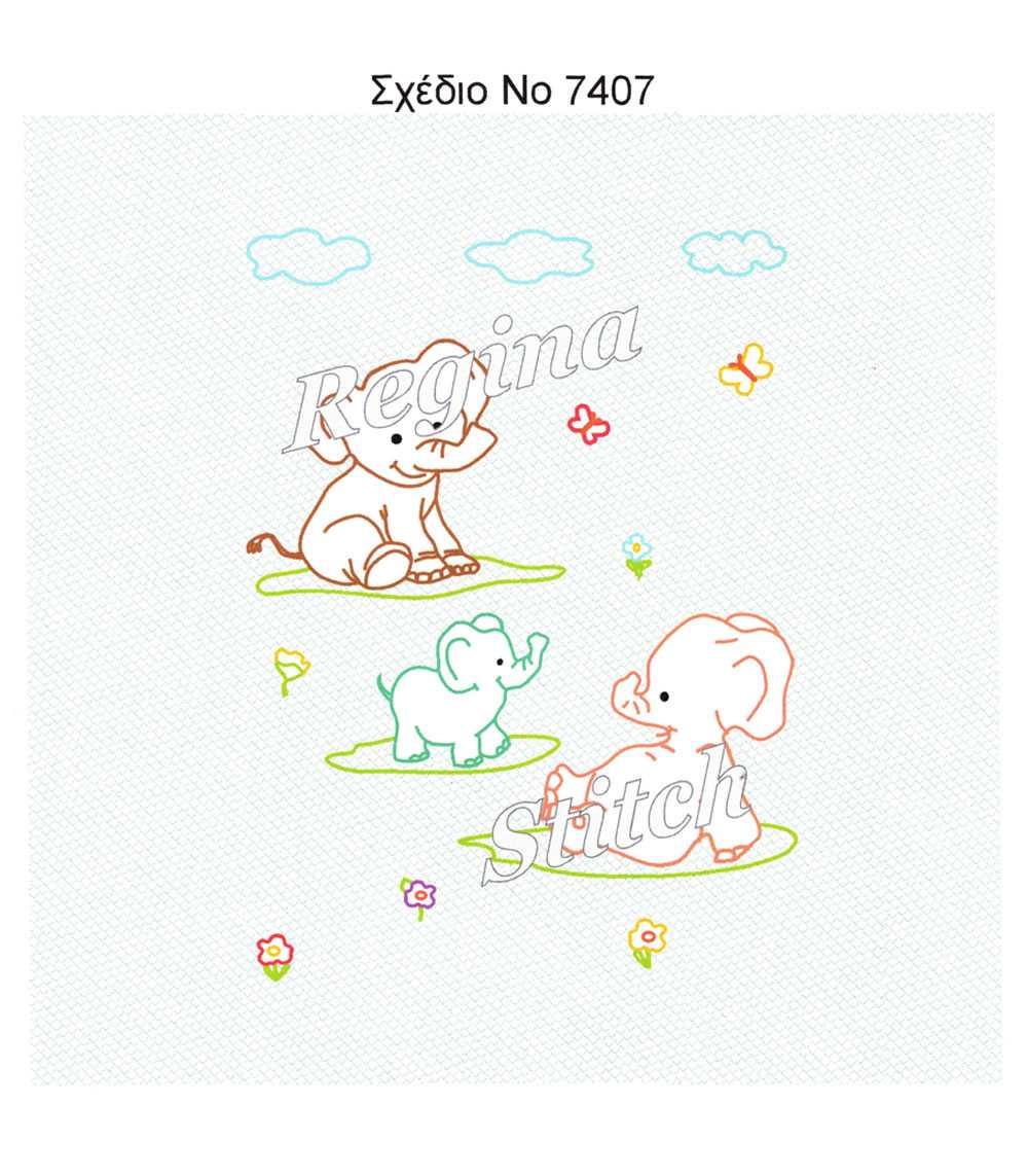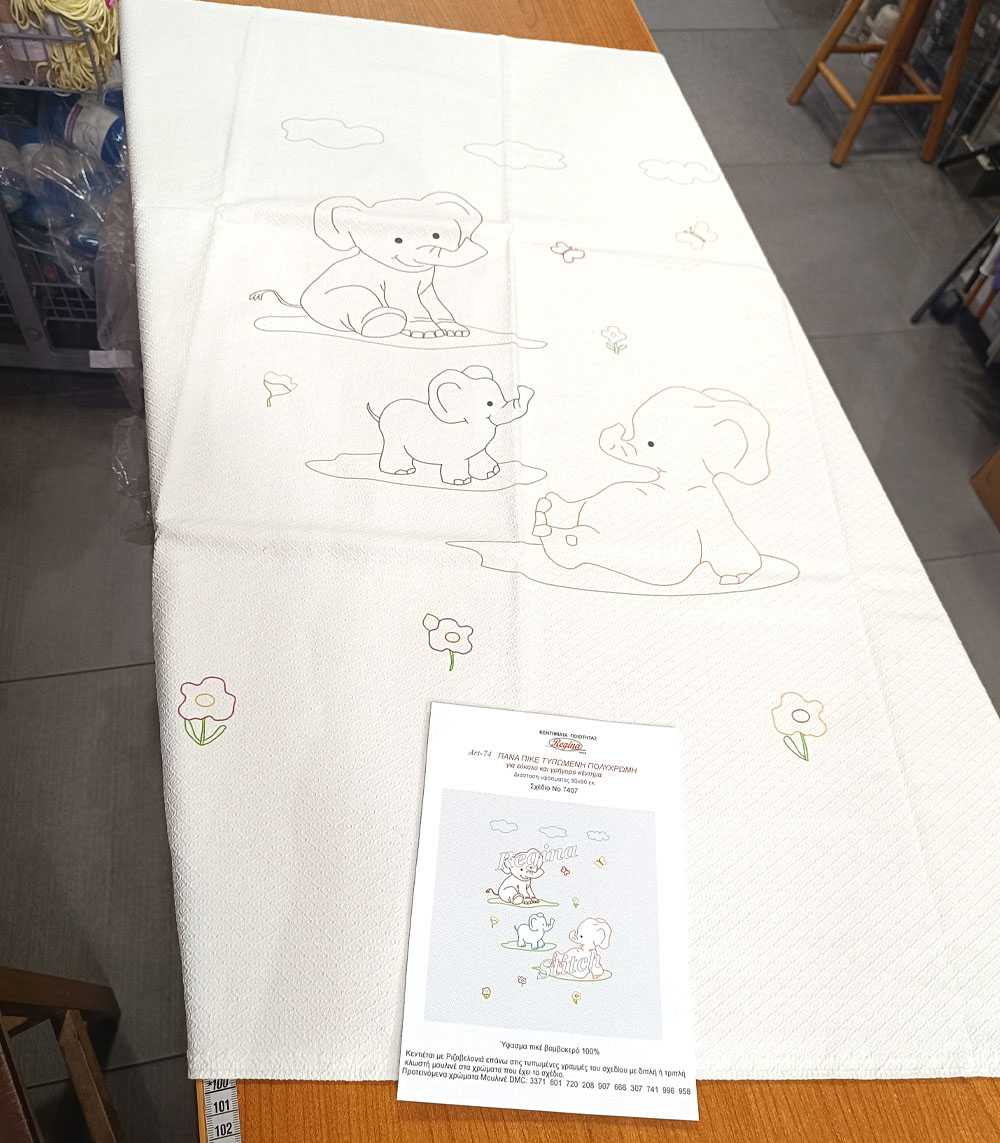 Παιδική βρεφική σταμπωτή πάνα από την εταιρεία Regina Stitch, σε ύφασμα πικέ 100% βαμβακερό, με σχέδιο ελεφαντάκια, κατάλληλο για δώρο σε νεογέννητο μωρό