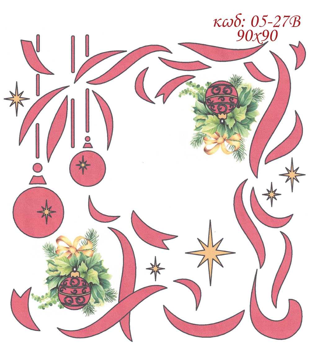 Σταμπωτό Χριστουγεννιάτικο Κέντημα Καρέ κόκκινες μπάλες 90×90 Κνωσός Art05-27Β – Pero ΕΧ