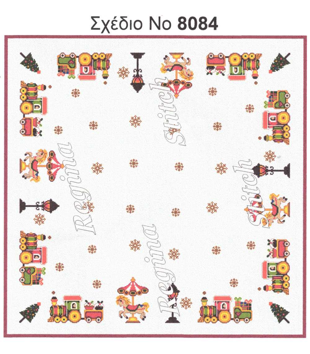 Καρέ χριστουγεννιάτικο σταμπωτό της εταιρείας Regina stitch με σχέδιο Χριστουγεννιάτικο Λούνα παρκ με διαστάσεις υφάσματος 90×90 και σχεδίου 83×83