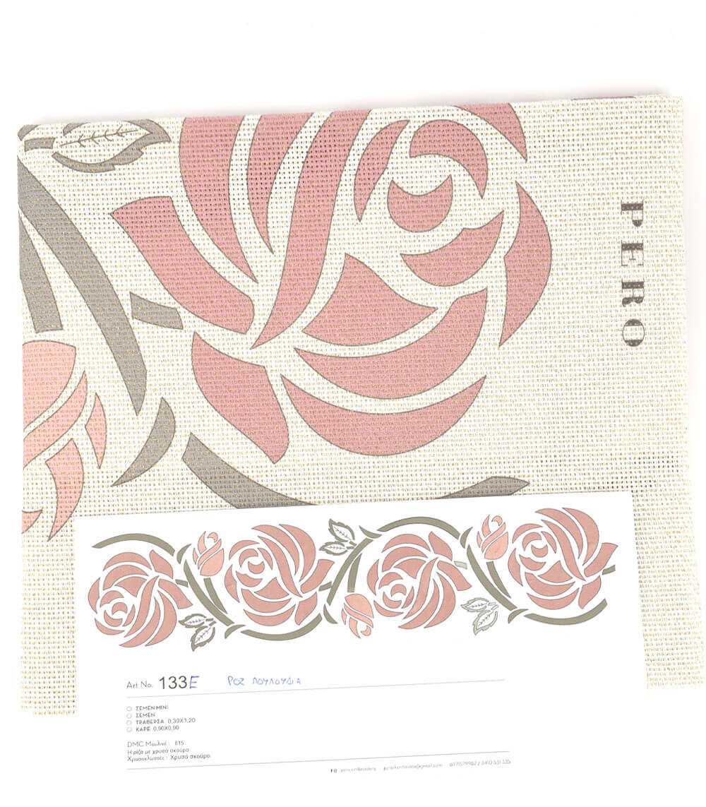 Σταμπωτή τραβέρσα 30×120 Κνωσός Ροζ γεωμετρικά λουλούδια Art133Ε – Pero ΛΧ