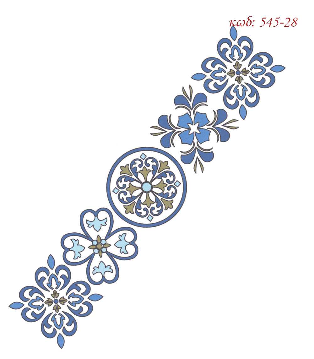 Σταμπωτή τραβέρσα Μπλε λουλούδια γεωμετρικά 50×130 κνωσός – Πεταλούδα Art545-28