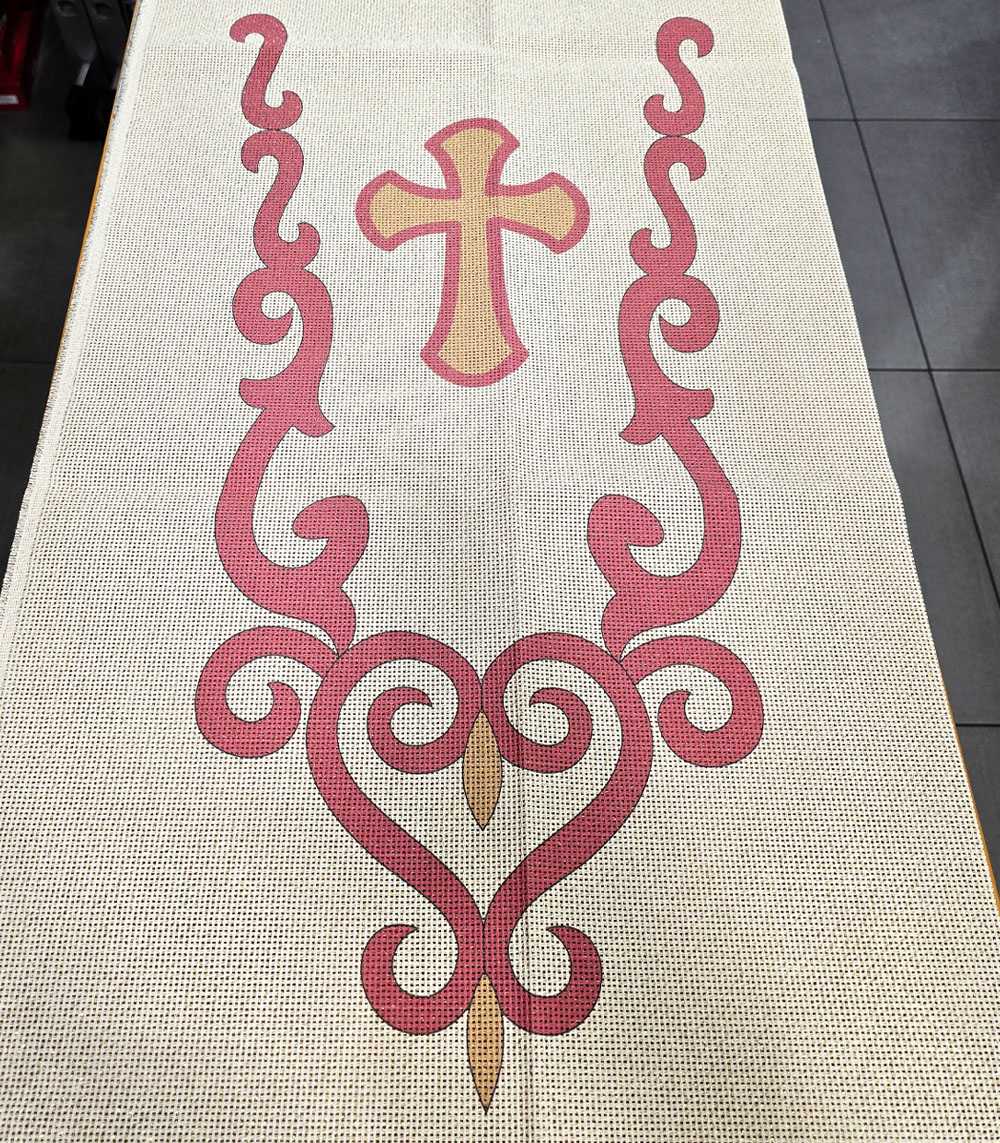 Σταμπωτό προσκυνητάρι της Pero με σταυρό με κόκκινα λουλούδια και διαστάσεις υφάσματος 50×150 και σχεδίου 37×72