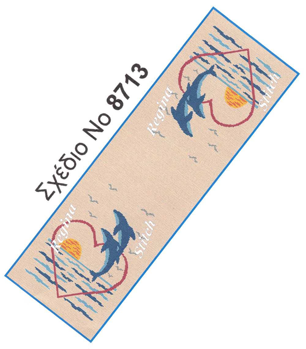 Σταμπωτό καλοκαιρινό κέντημα τραβέρσα Δελφίνια 42×130 ύφασμα Πόντζα – Regina stitch 8713 ΕΑ
