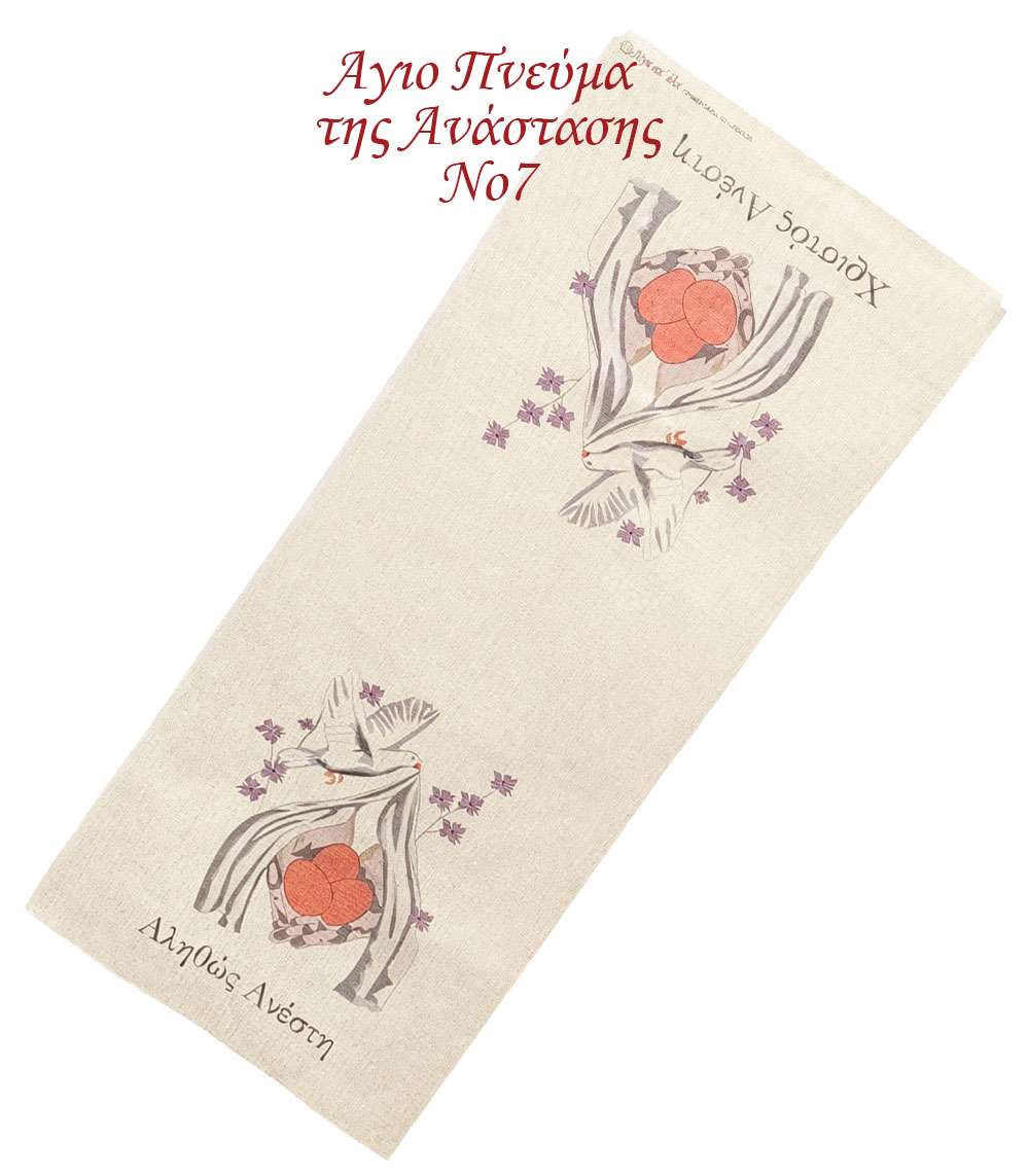 Πασχαλινή σταμπωτή τραβέρσα παραγωγής του καταστήματος μας “Λίγα απ’ όλα” με το γνωστό πλέον σχέδιο μας “Το Άγιο Πνεύμα της Ανάστασης”