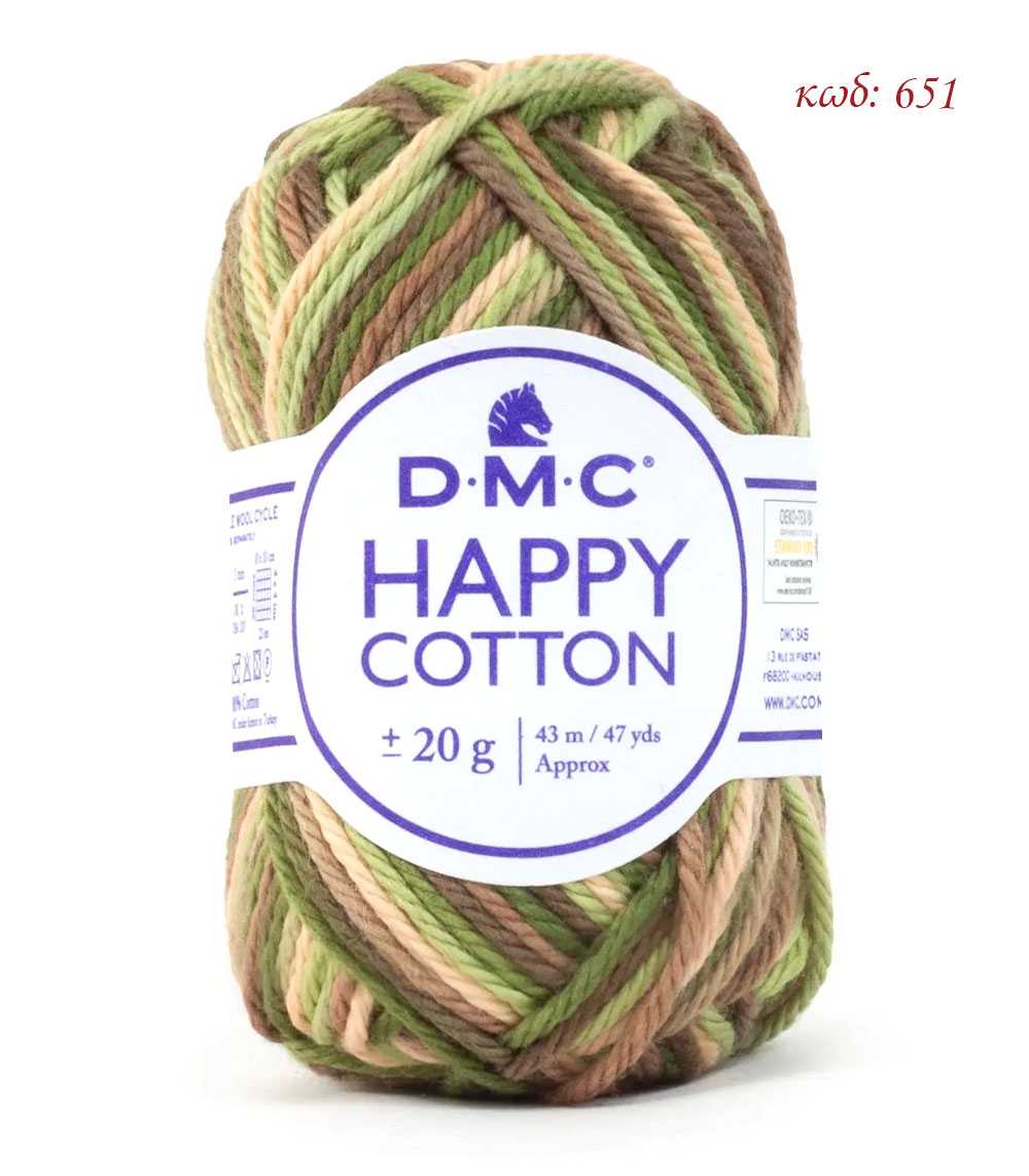 Το DMC Happy Cotton είναι το πιο αγαπημένο καλοκαιρινό νήμα για όσους λατρεύουν την τεχνική του amigurumi. Κατασκευασμένο από 100% βαμβάκι, προσφέρει την τέλεια ισορροπία ανάμεσα στην ανθεκτικότητα και την απαλότητα – ακριβώς ό,τι χρειάζεσαι για να δημιουργήσεις πλεκτά κουκλάκια, ζωάκια και χαριτωμένα αξεσουάρ.