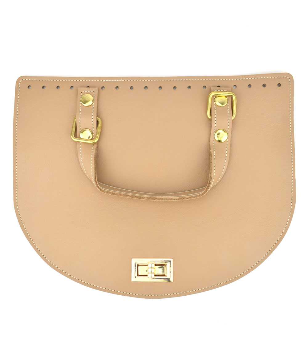Καπάκι από δερματίνη με χερούλι και μεταλλικό διπλόκαρφο κούμπωμα, με διαστάσεις 28 εκατοστά Χ 22 εκατοστά για να κατασκευάσετε την δική σας πλεκτή τσάντα.