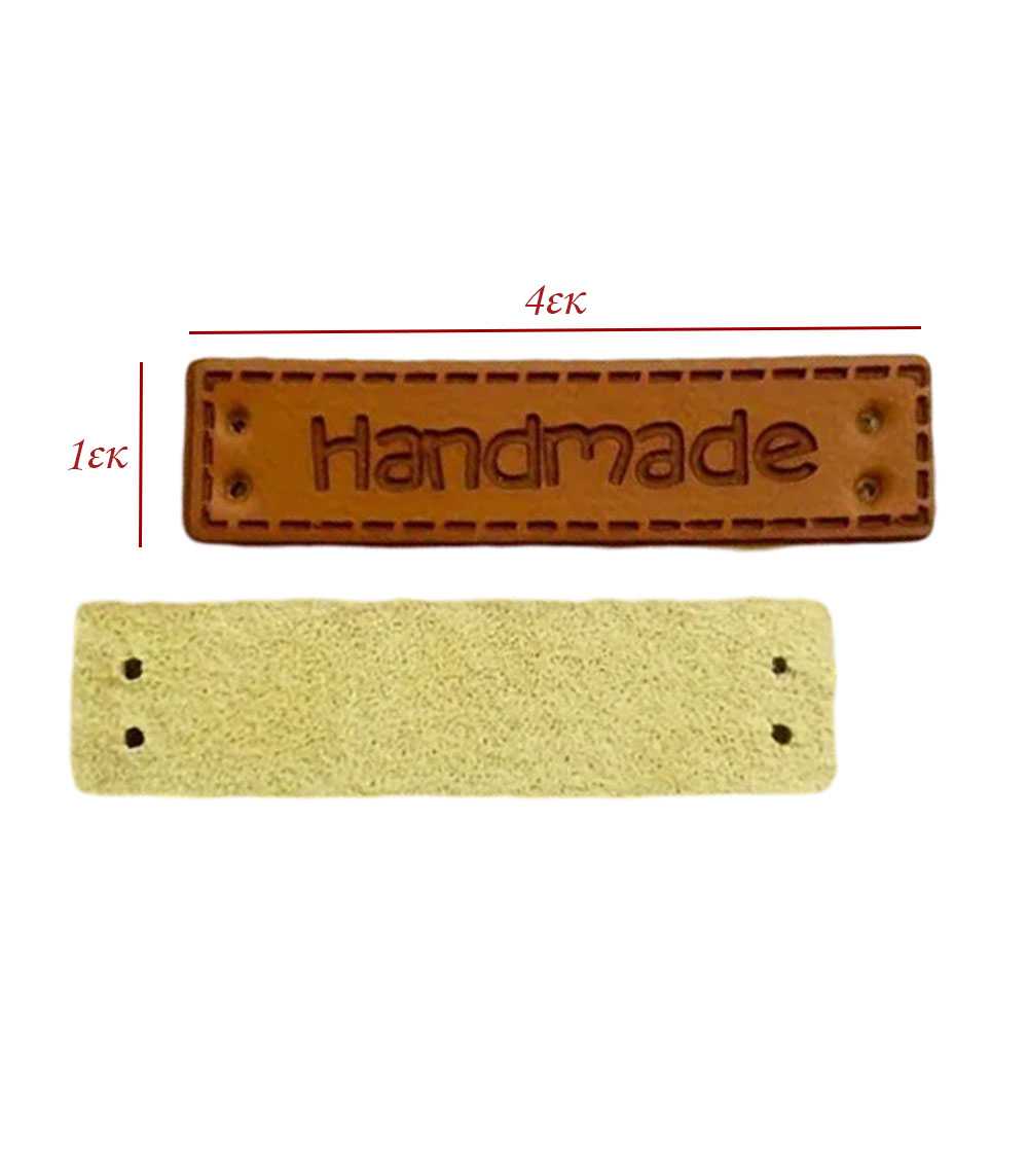 Ταμπελάκι δερματίνης που γράφει handmade για να στολίσετε τις χειροποίητες, πλεκτές δημιουργίες σας!