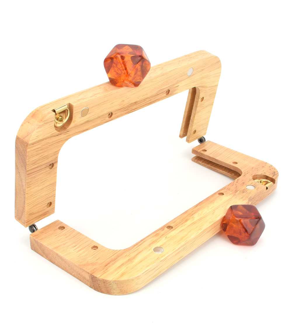 Ξύλινο πλαίσιο/βάση frame για πλεκτές τσάντες και τσαντάκια, στυλ “clutch”, με πολυγωνικές καφέ χάντρες