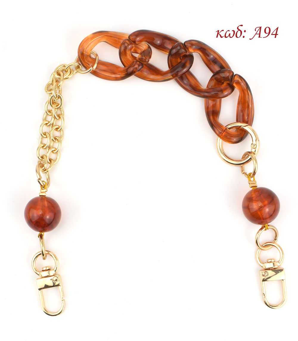 Μεταλλική Αλυσίδα χρυσή Ταρταρούγα για πλεκτές τσάντες, με κοκκάλινους κρίκους ενδιάμεσα, και κουμπώματα για να πιάνουν επάνω στη τσάντα