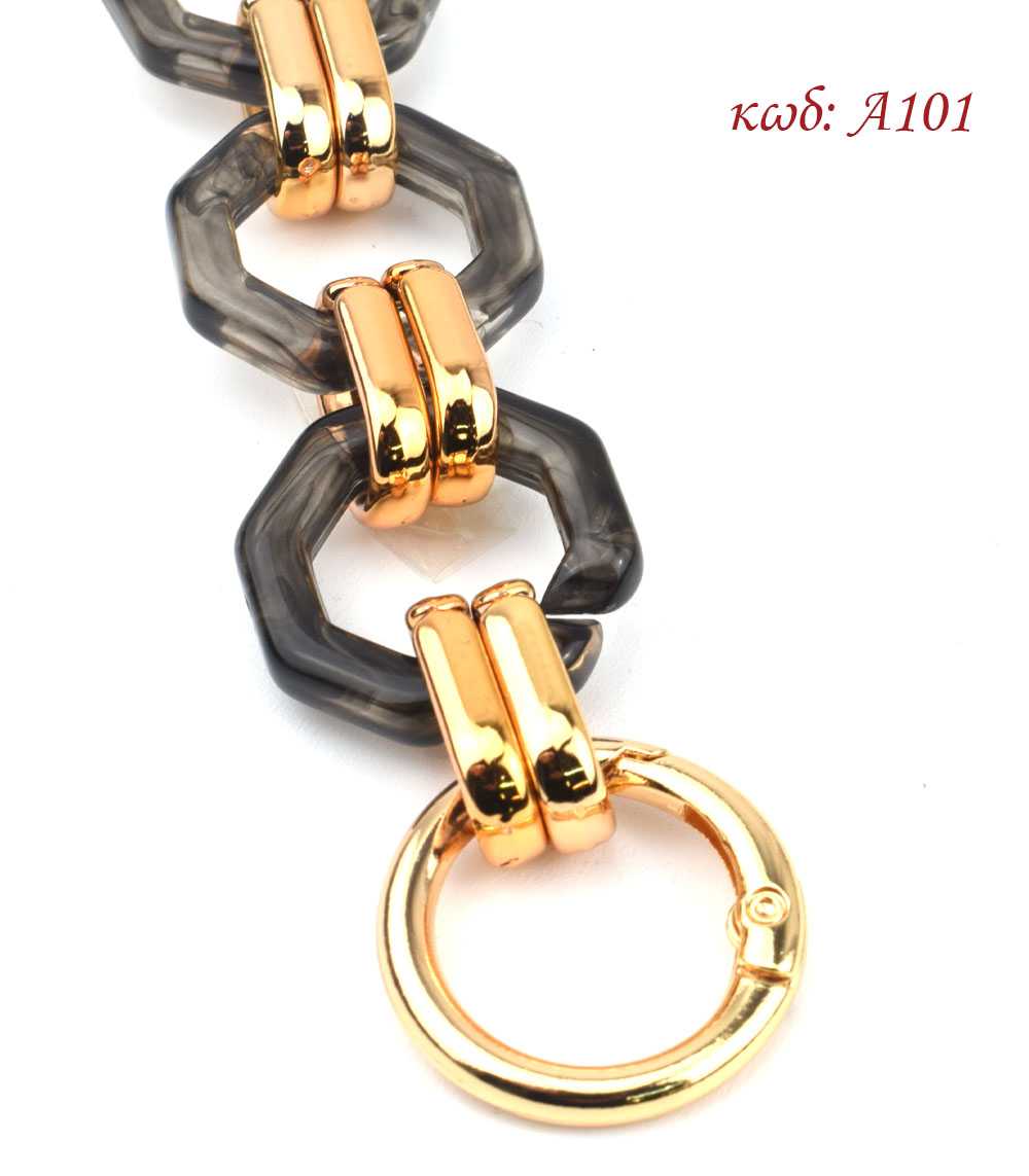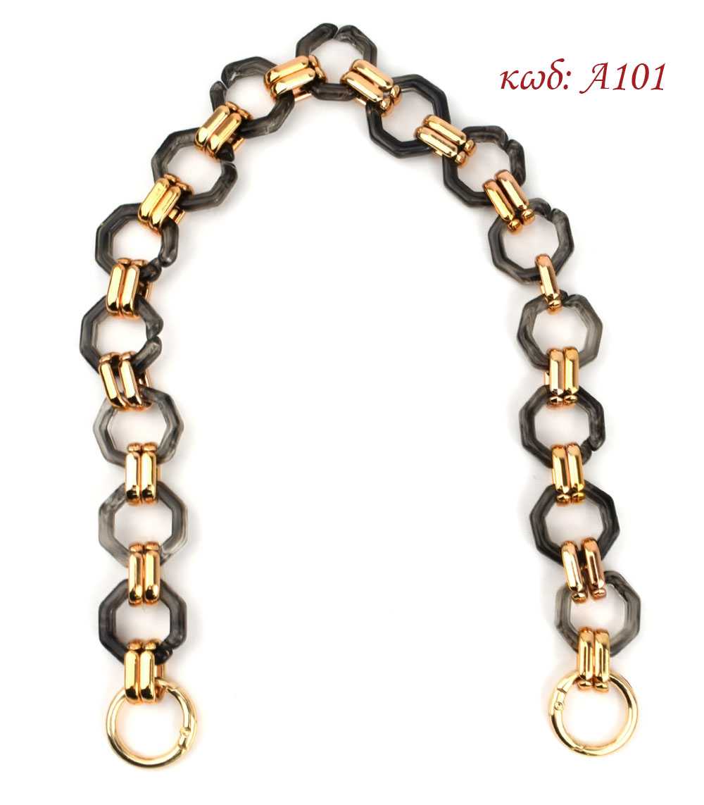 Κοκκάλινη Αλυσίδα με γκρι κρίκους και χρυσά ενωτικά για πλεκτές τσάντες, και κουμπώματα για να πιάνουν επάνω στη τσάντα