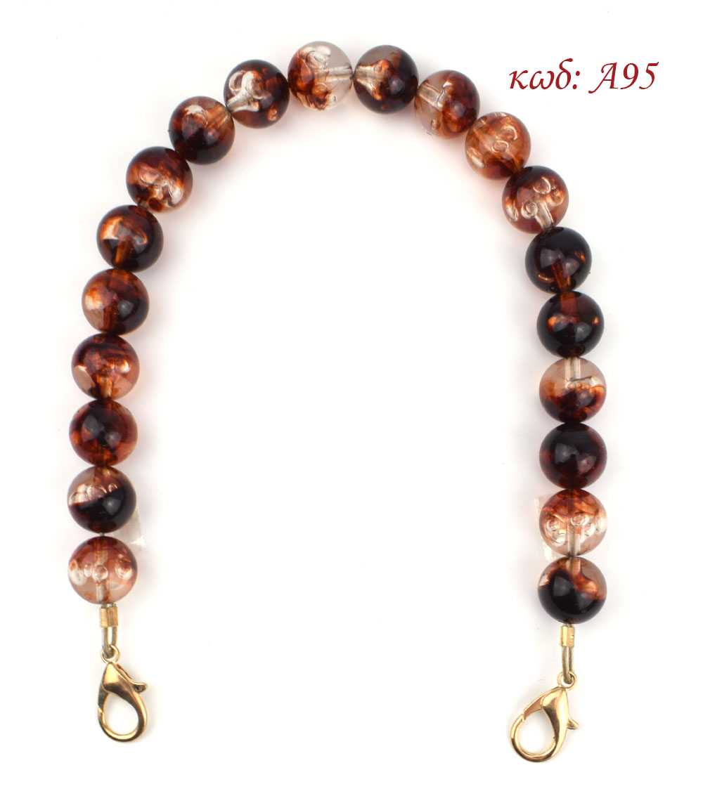 Χερούλι για πλεκτές τσάντες, με χάντρες σε χρώμα καφέ ταρταρούγα, και κουμπώματα για να πιάνουν επάνω στη τσάντα