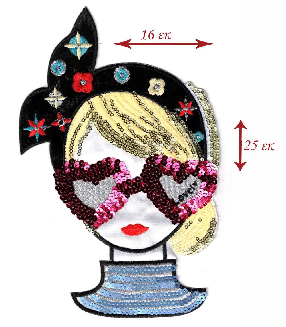 Θερμοκολλητικό σιδερότυπο μοτίφ Κοπέλα με γυαλιά καρδούλες 25×16 – Marbet 121388