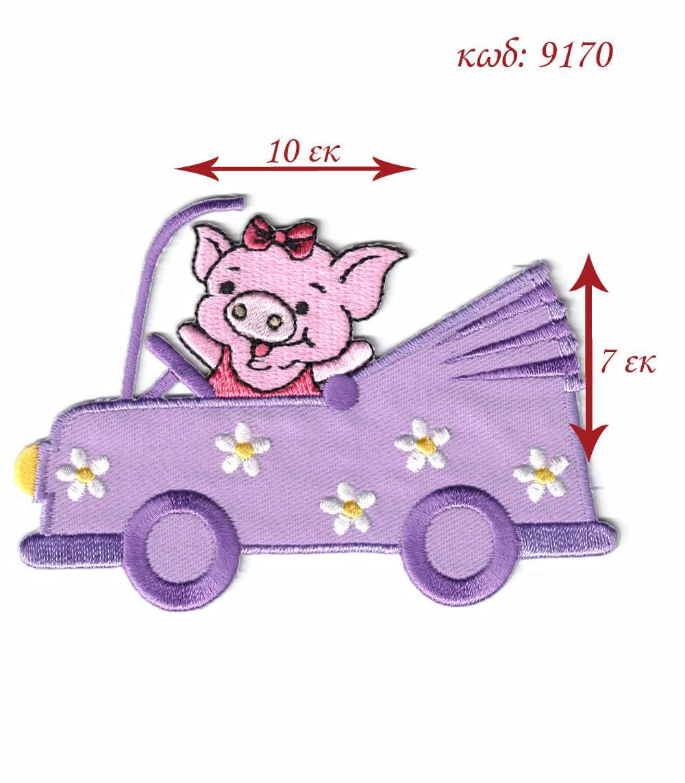 Σχέδιο: Γουρουνάκι μοβ αυτοκίνητο