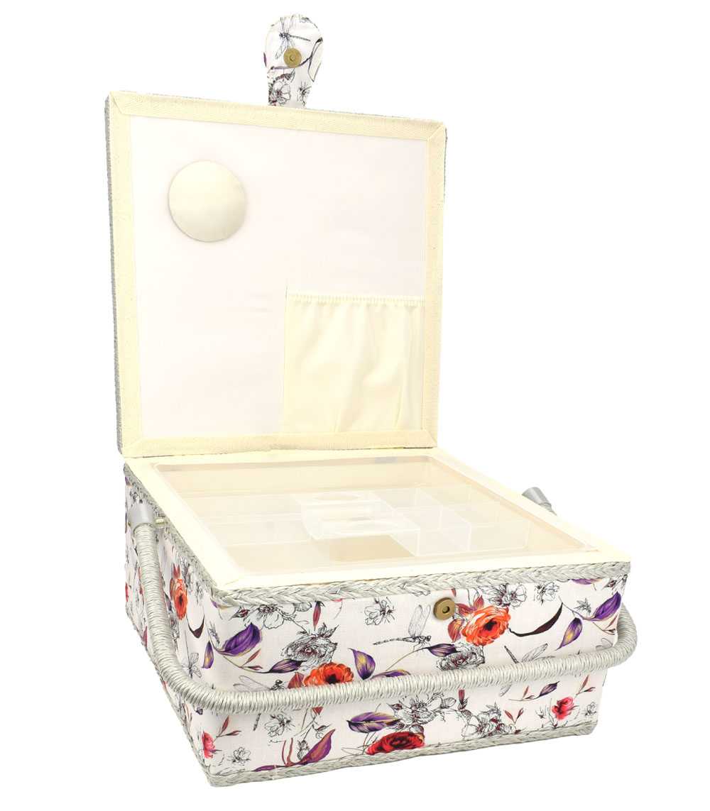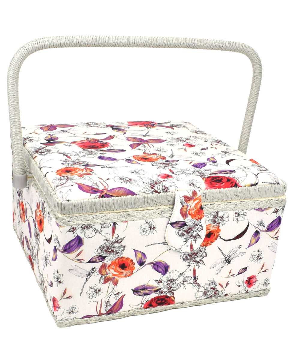 Υφασμάτινο κουτί ραπτικής με σχέδιο Τριαντάφυλλα με χερούλι και μαγνητικό κούμπωμα 28x28x17 13408-11