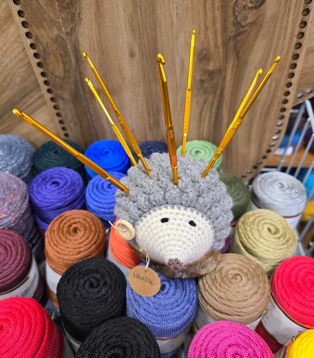 Χειροποίητο κουκλάκι πλεκτό amigurumi Σκαντζόχοιρος, μπορεί να χρησιμοποιηθεί ως θήκη για βελονάκια ή στυλό και μολύβια!